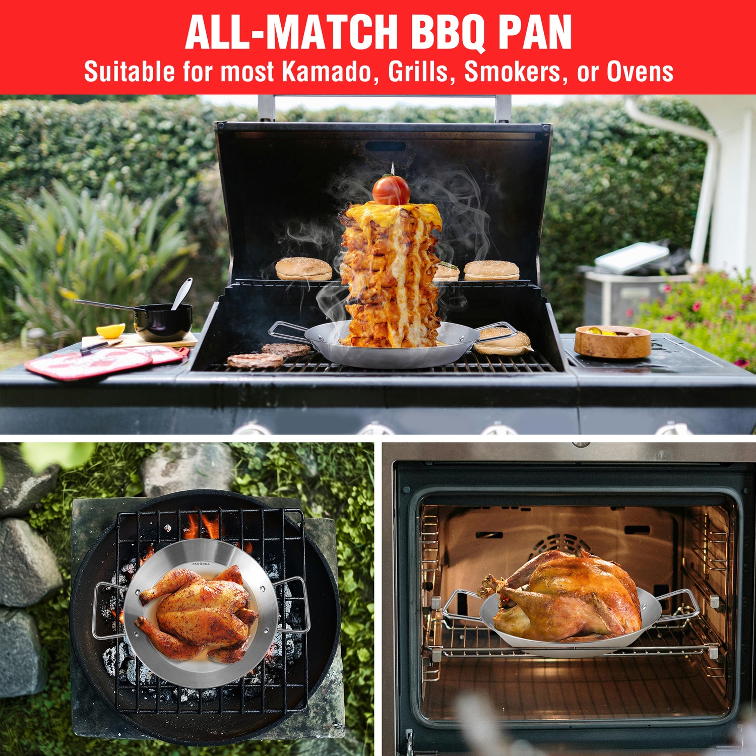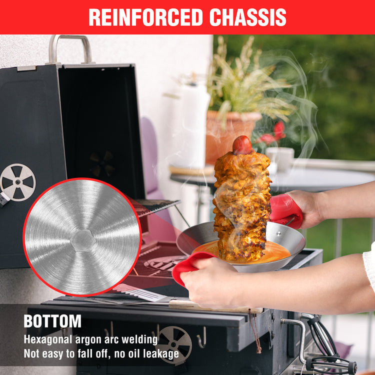- Easy to Clean and Store: The polished surface design facilitates easy cleaning, and a round bowl shaped base helps you to get rid of corners that are difficult to clean. This shawarma stand with wider handle makes it easier to remove from the smoker or oven, and hang it on the kitchen wall to save more space, even brush and fittings could be hang on the wall