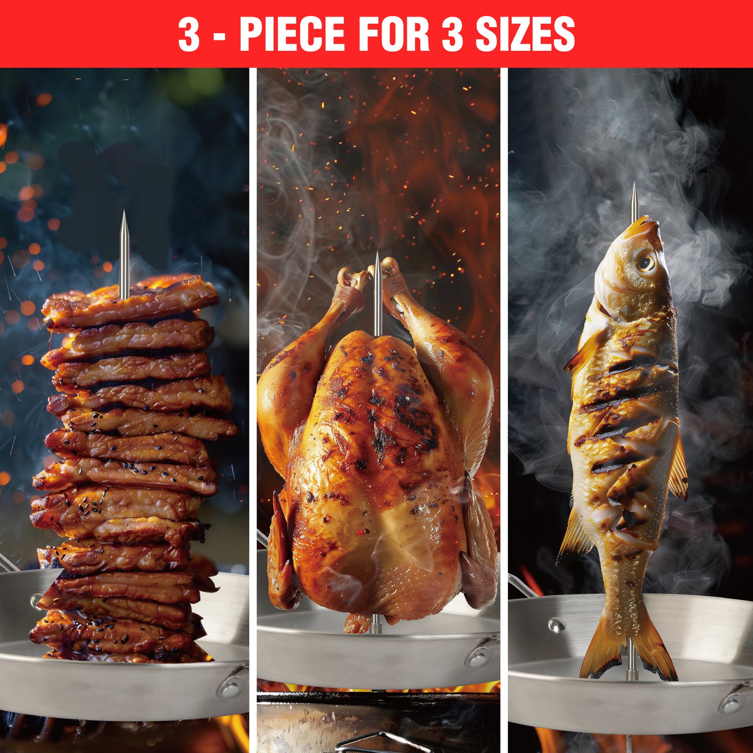 - Fit for Any Occasions: 8 inches, 10 inches, and 12 inches spikers caters to various ovens, smokers, grills, barbecues. The aroma of shawarma, kebabs, chickens, meat and others could be fully stimulated, this tool allows you to showcase restaurant-quality dishes for camping, hiking, picnics, barbecues, and more
